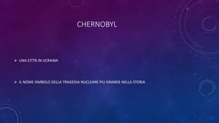 Il disastro di Chernobyl, avvenuto il 25-26 aprile 1986, è stato causato dall'incuria degli amministratori, portando a migliaia di morti e alla contaminazione di vasti territori. Le conseguenze includono un aumento dei casi di cancro, la morte di molte specie, e la devastazione ambientale permanenti. Il documento sottolinea l'importanza di un uso sicuro dell'energia nucleare e di meccanismi di sicurezza per prevenire futuri disastri.
