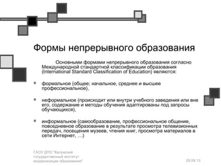 Документ обсуждает обновление методической работы в образовании в свете введения новых стандартов, акцентируя внимание на системе непрерывного образования и профессионального развития педагогов. Основные формы методической работы включают формальное, неформальное и информальное обучение, с целью повышения качества педагогической деятельности и эффективности образовательного процесса. Ожидается, что развитие сетевого взаимодействия и новые подходы к организации методической работы помогут стимульировать креативность педагогов и улучшить результаты работы образовательных учреждений.