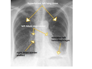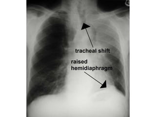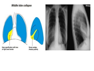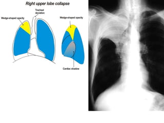 4. Mediastinal shift - The mediastinum shifts towards the side of collapse to occupy the space left by the collapsed lung.