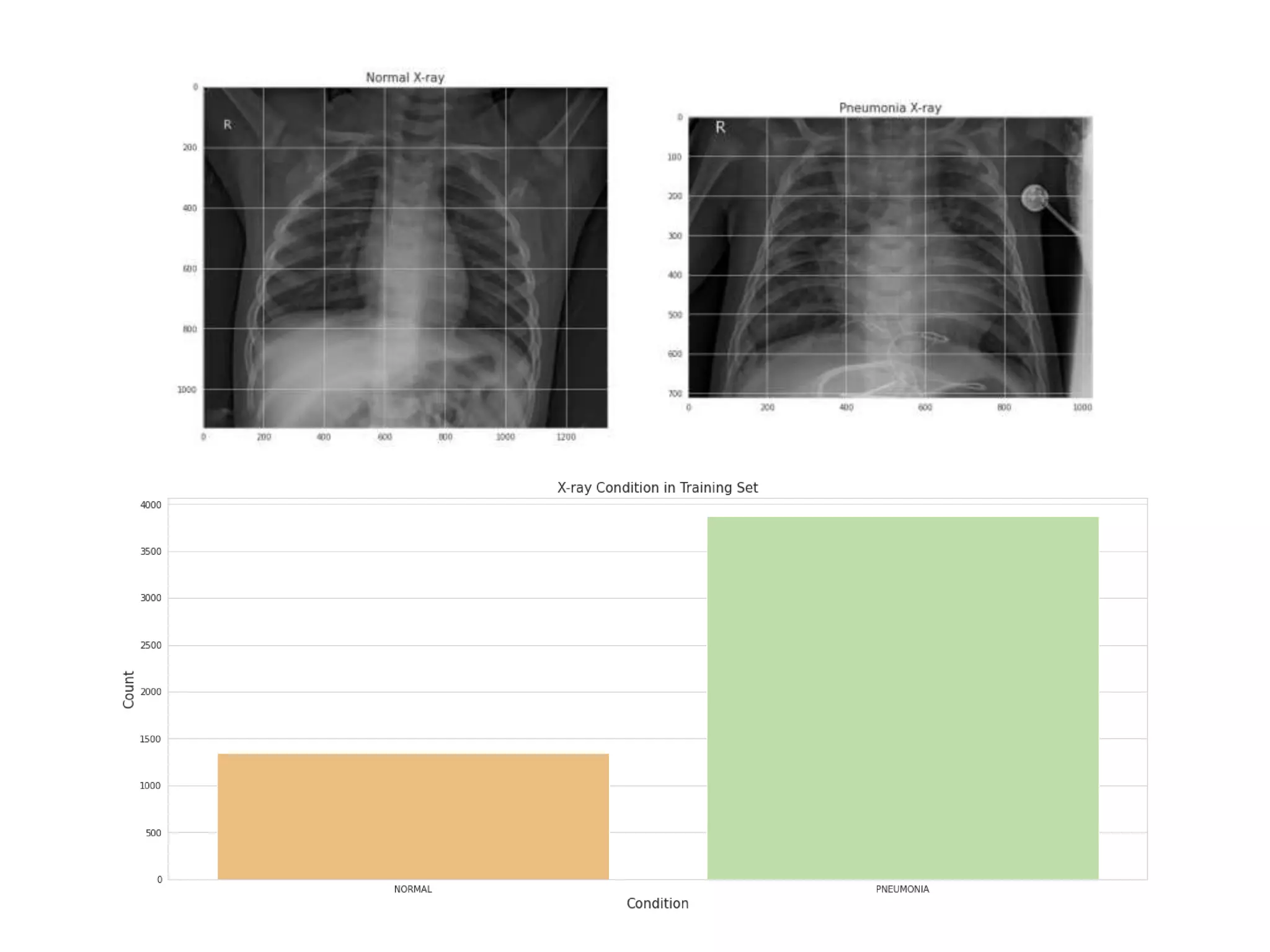 This document discusses using deep learning models to classify chest x-ray images as either normal or pneumonia. It obtained a dataset of over 5,800 pediatric chest x-rays from a Chinese hospital. Various deep learning models were explored, including multilayer perceptrons, convolutional neural networks, and transfer learning with VGG16, which achieved 92% validation accuracy. The document recommends future work such as distinguishing between viral and bacterial pneumonia and combining models with SVM. It also discusses recommendations to reduce childhood pneumonia prevalence.
