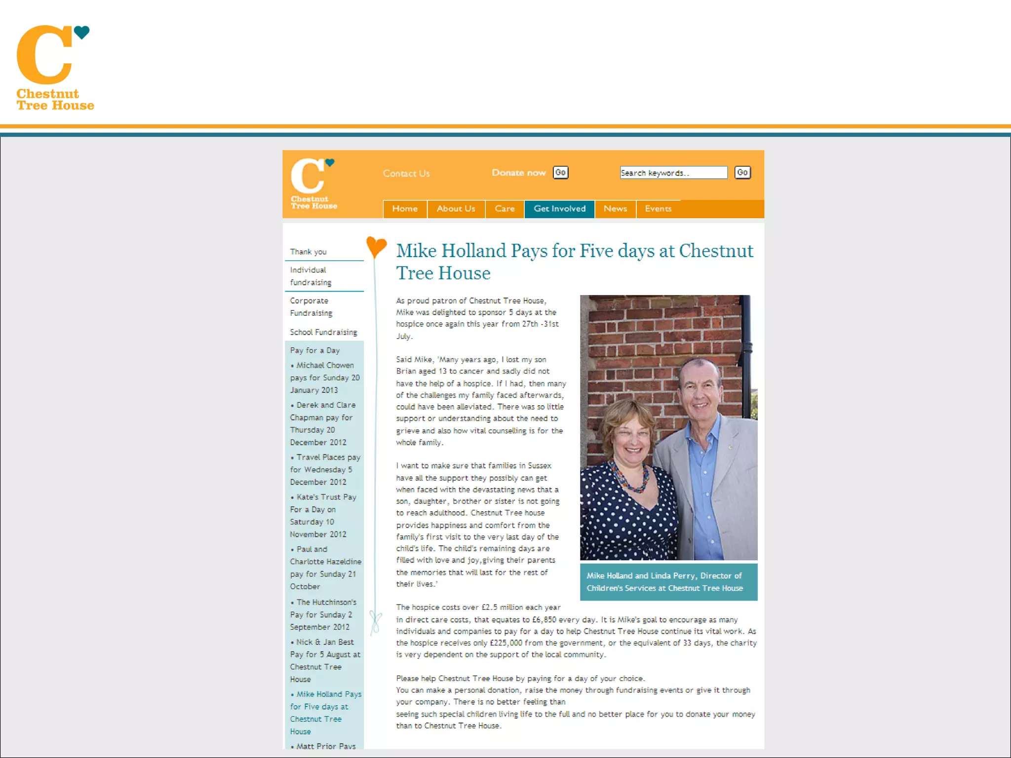 This document discusses Chestnut Tree House's "Pay For A Day" fundraising campaign. The campaign asks donors to pledge to pay for the costs of caring for a child for one day. It has been very successful, raising over £750,000 in its first two years from over 120 pledges. 90% of pledges were honored. The funds provide a significant source of income for the children's hospice. The campaign involves groundwork, identifying patrons, follow up on pledges, and marketing at events. It has been innovative and repeatable. The campaign was awarded nationally in 2012 for its innovation in hospice fundraising.
