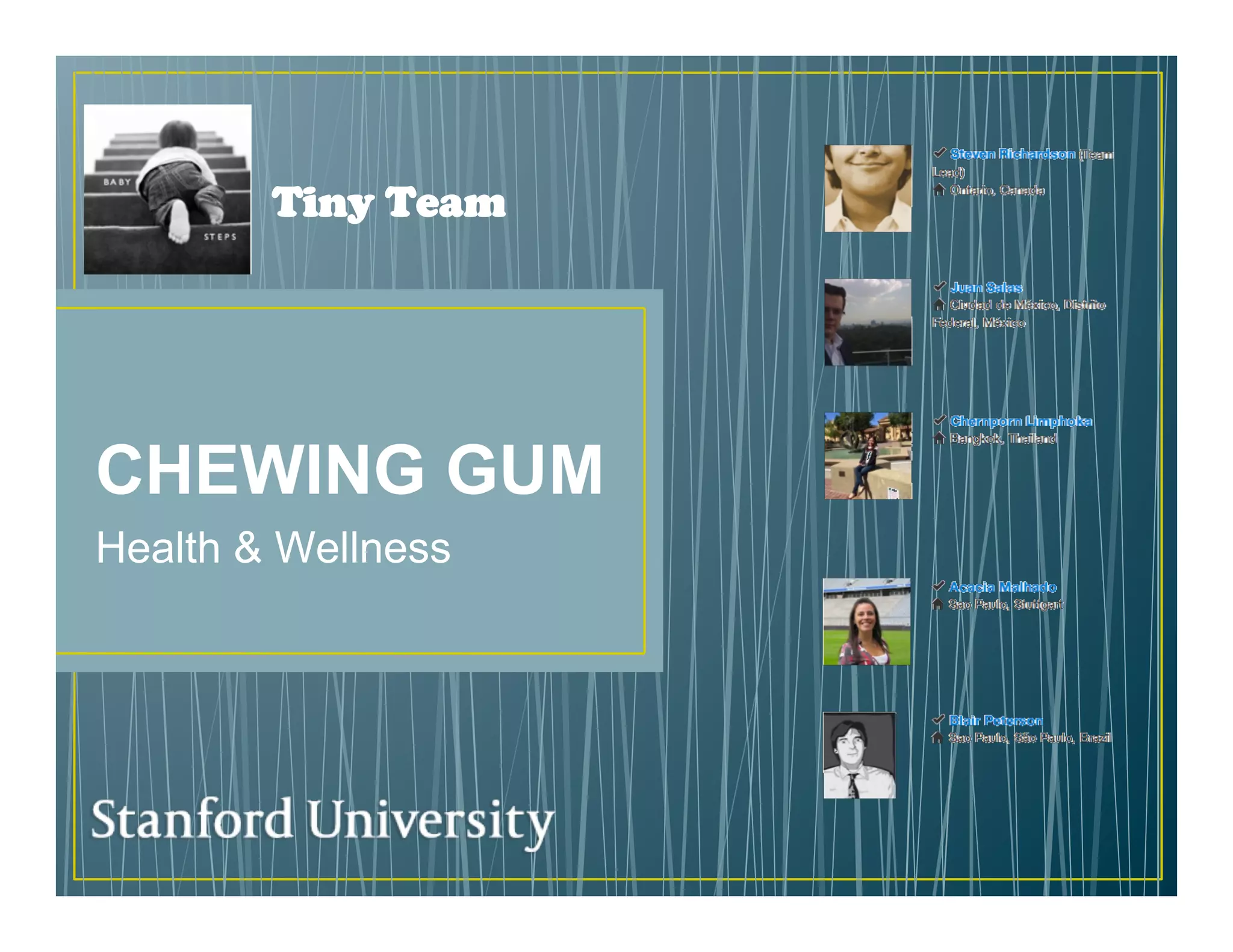 The document discusses using chewing gum as a delivery method for medicines and supplements. It proposes gum that provides slow or quick release of medicine, gum containing vitamins, and gum to aid with digestion or sleep. Specific gum types mentioned include SLOGUM and QUIGUM for slow or quick medicine release, VITAGUM containing vitamins, DIGUM to aid digestion, and SLEEPGUM/SLEEGUM to aid sleep. The gum aims to make medicine intake easier and more enjoyable while providing health benefits.