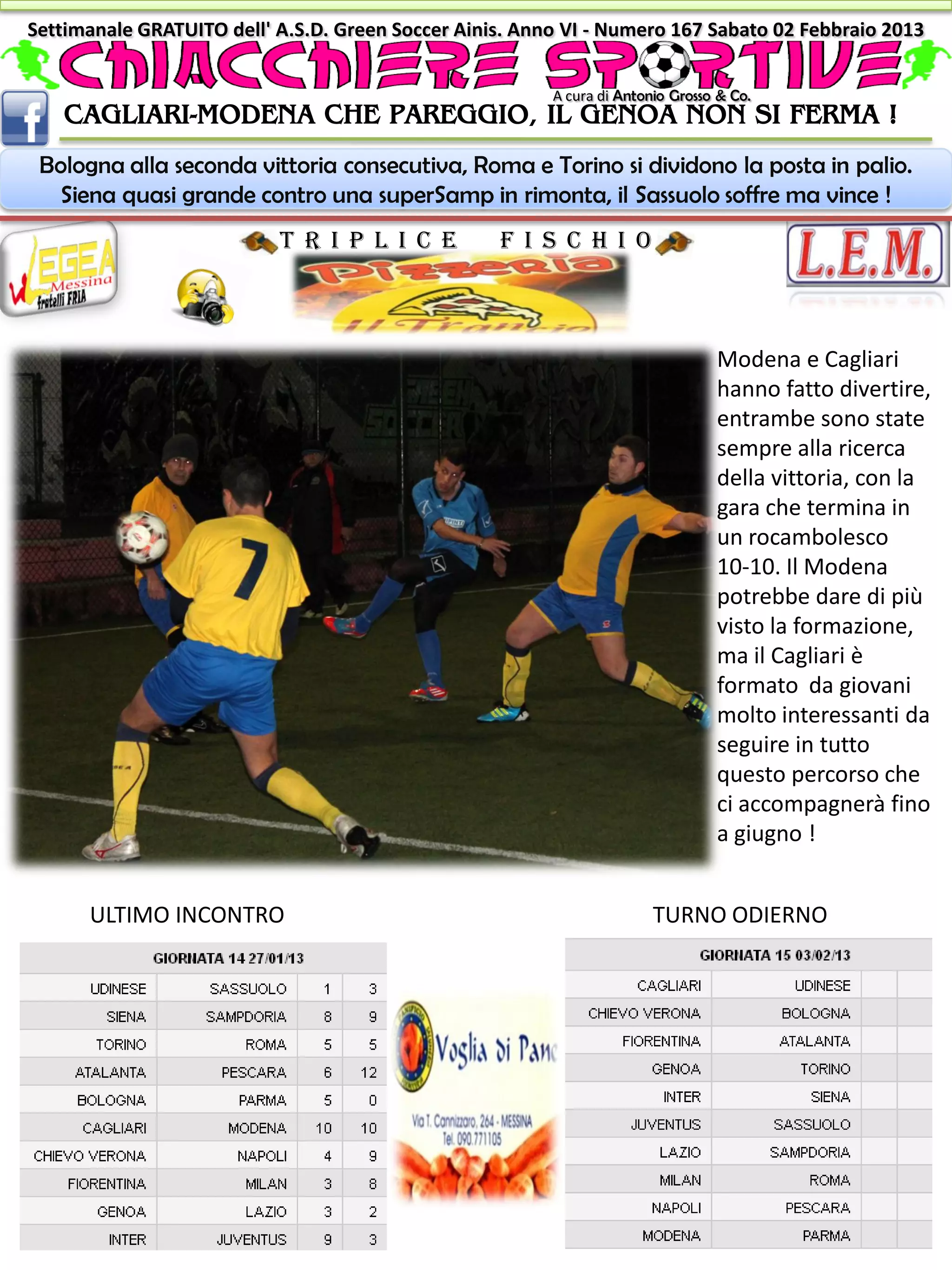 Il documento fornisce un resoconto delle partite di calcio della serie B, con dettagli sui risultati e le prestazioni dei giocatori. Modena e Cagliari hanno pareggiato in una partita spettacolare, mentre il Bologna ha ottenuto una vittoria convincente. La classifica si fa più serrata con il Napoli che continua a mantenere la testa.