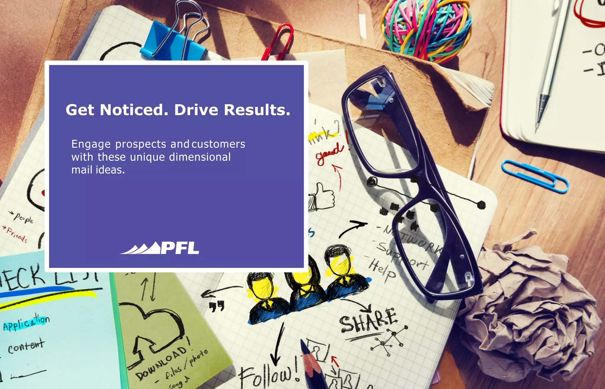 PFL is a marketing technology company that enhances sales and marketing effectiveness using multi-channel strategies, including dimensional mail, to engage prospects and customers. The document discusses various innovative approaches for capturing attention and driving results, such as sending creative mailers and gifts to prospects at different stages of the sales process. Emphasizing the importance of cohesive customer journeys and ongoing engagement, it illustrates how tactile marketing can foster relationships and improve customer loyalty.
