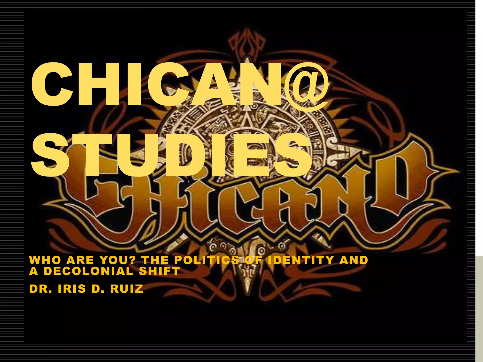 This document discusses decolonialism and Chicanx identity. It begins by explaining that decolonialism in Chicanx Studies aims to regain indigenous knowledge and history in a non-violent way. It then lists different aspects of coloniality that will be examined, including knowledge, being, politics, religion, gender, ethnicity, and food. The document provides background on prominent decolonial thinkers like Fanon and Perez. It summarizes the histories of indigenous groups in Mexico like the Olmecs, Zapotecs, Toltecs, Aztecs, and concludes with discussions of terms like Mestizx, Chicanx, Latinx, and debates around identity labels.