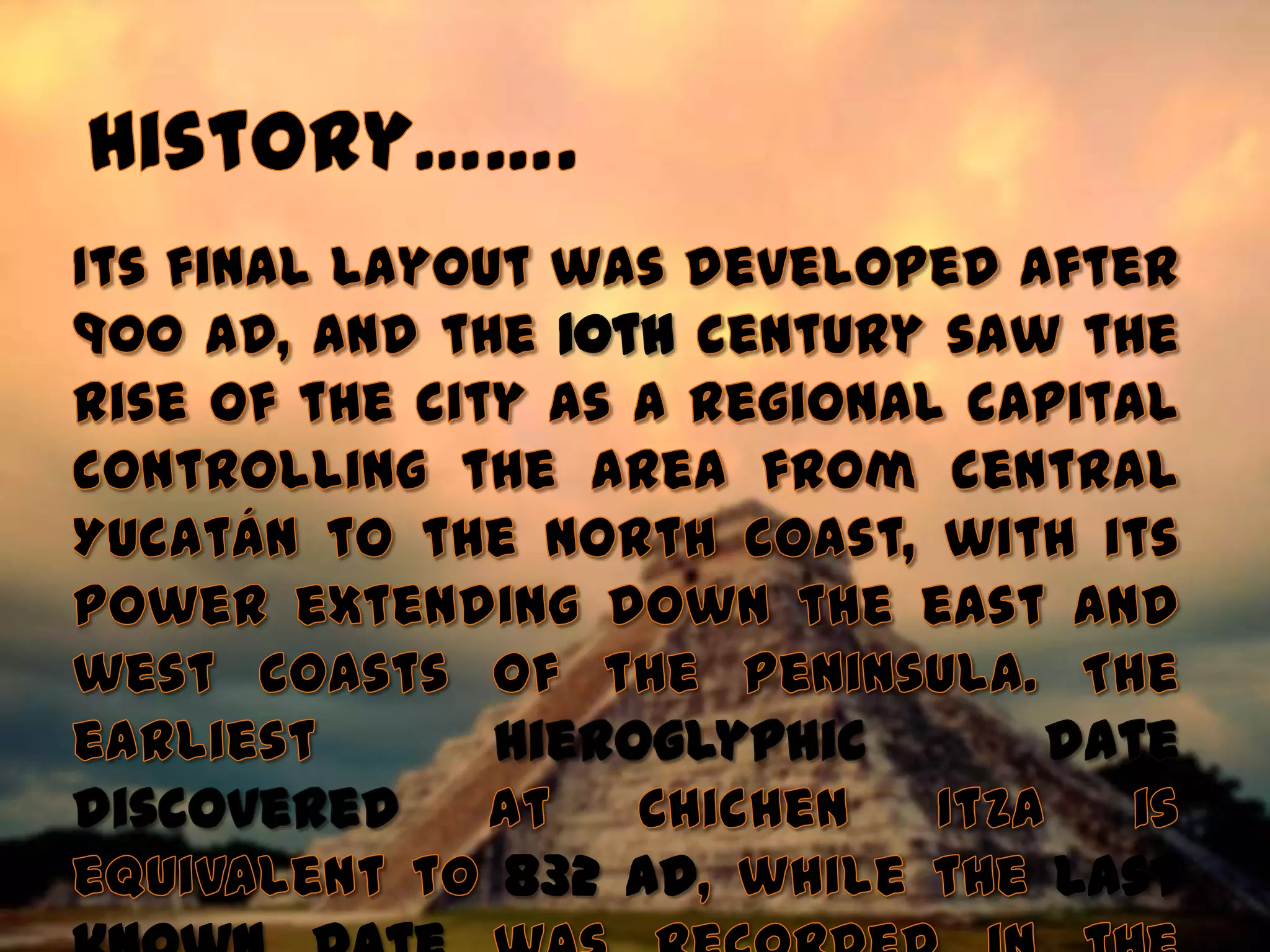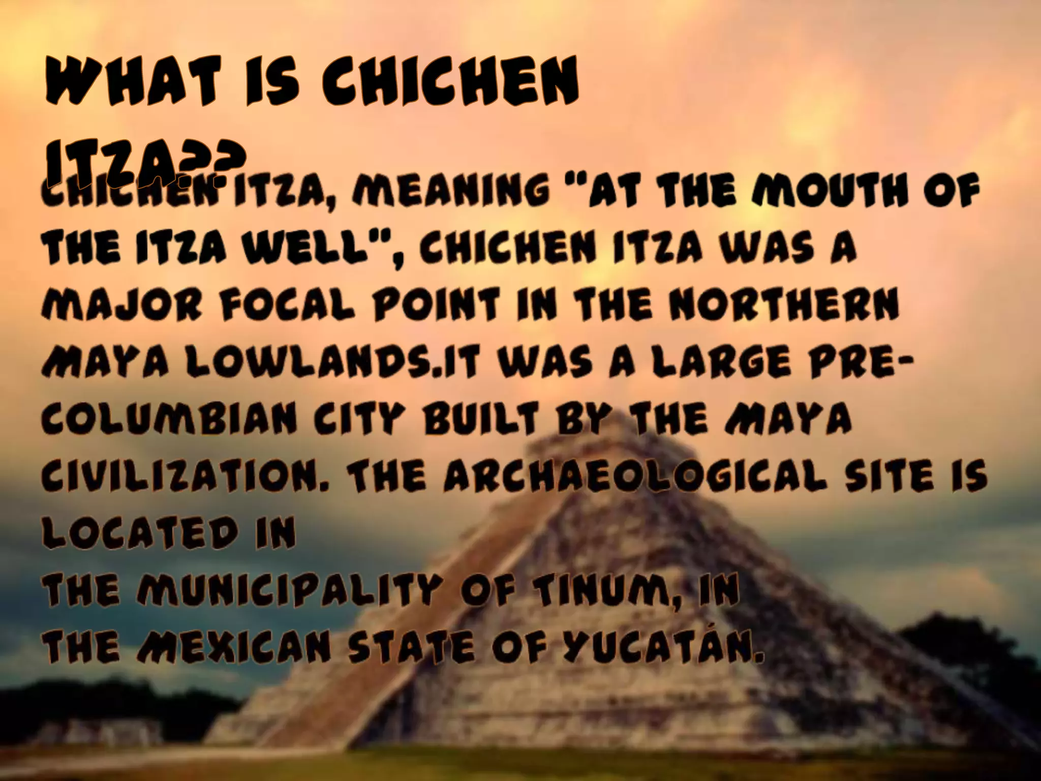 Chichen Itza was an important city of the Maya civilization located in Mexico. It features many architectural styles and structures from the Maya including the El Castillo pyramid, the Great Ball Court, cenotes like the Cenote Sagrado, and the Temple of the Warriors complex. The history of Chichen Itza and the Maya is obscure due to a lack of written records, but the site provides insight into the Maya civilization between 600-1200AD through its architectural remains.