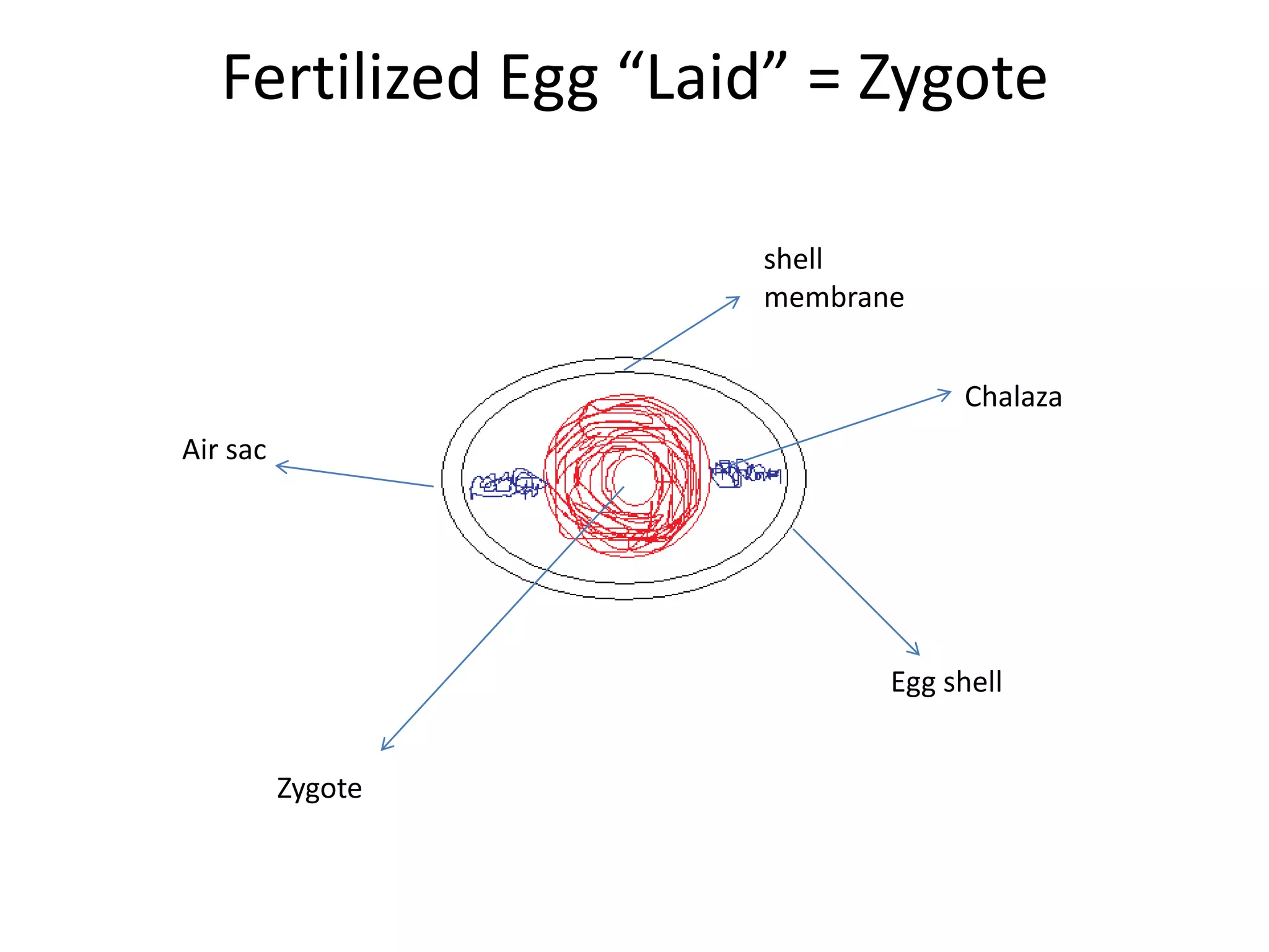 The document describes the structure and early development of a fertilized egg. It shows that a fertilized egg contains a zygote surrounded by membranes and air sacs within the egg shell. The zygote undergoes cleavage to form a blastoderm with multiple blastomeres. Gastrulation then occurs as the blastoderm elongates and forms three germinal layers - the epiblast, hypoblast and mesoderm. This establishes the basis for further organ development in the early embryo.
