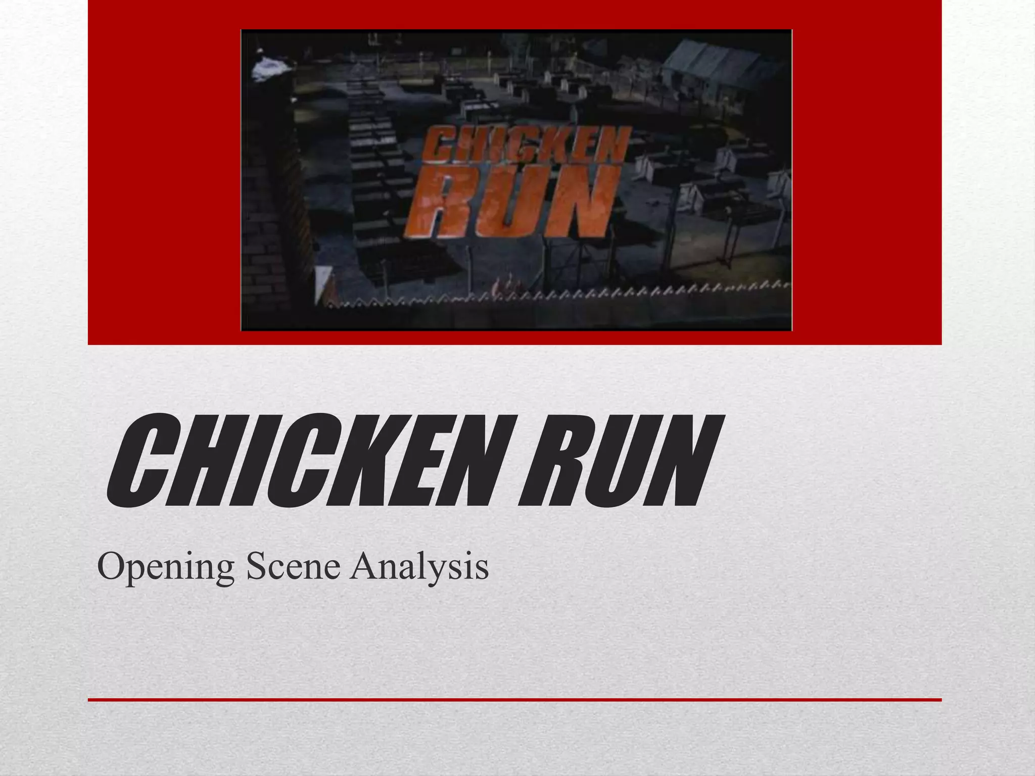 1) The opening scene establishes the film's genre by showing the moon and setting a mysterious tone. It introduces Mr. Tweedy, who seems to be hiding something as the antagonist watching over the farm.
