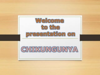 Chikungunya is a viral disease transmitted by infected mosquitoes that causes fever and severe joint pain. It is caused by the chikungunya virus which is spread between humans by Aedes albopictus and Aedes aegypti mosquitoes. Large outbreaks have occurred in parts of Africa, India, and Southeast Asia. Currently, there is no vaccine available and treatment focuses on relieving symptoms.