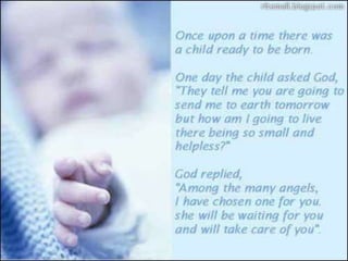 The Inspiring slide show depicts a conversation of a baby about to be born with the god. slide show presented by proverb121.blogspot.com