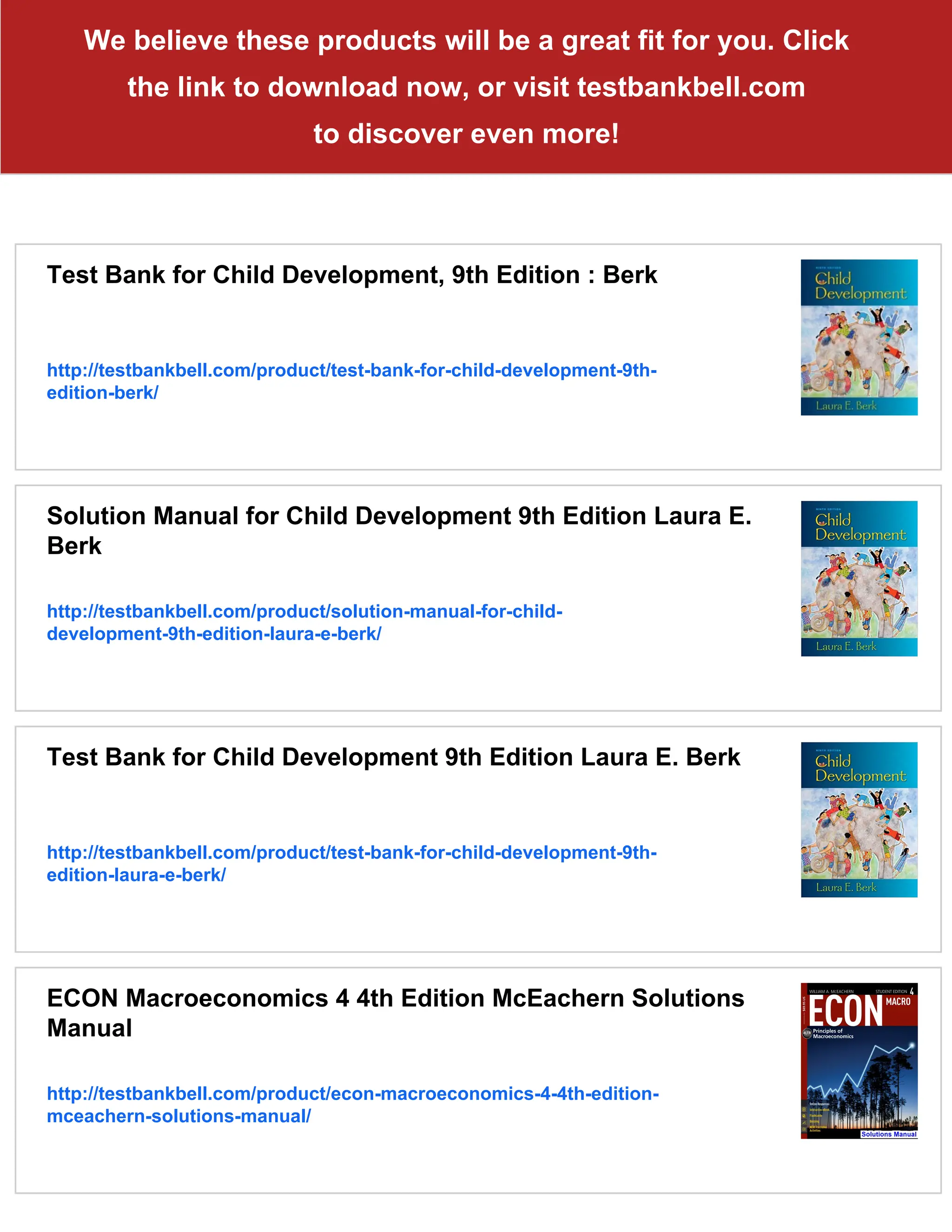 Test Bank for Child Development 9th Edition Laura E. Berk