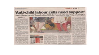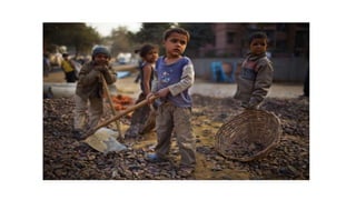 Child labour refers to work done by children that deprives them of their childhood and negatively impacts their health, education, and development. Macroeconomic factors that encourage child labor include poverty, lack of access to schools, growth of the informal economy with low wages, and inflexible labor markets. Consequences of child labor are that it prevents education and proper development, reduces physical health, and has long-term negative impacts on human capital accumulation and economic prosperity. Efforts to reduce child labor include legislation, international initiatives, and increasing access to compulsory education.