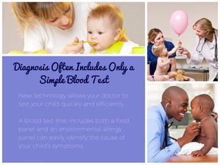 A simple blood test can identify the cause of a child's allergy symptoms by testing for food and environmental allergies. Treatment depends on the type of allergy, with serious allergies requiring an epinephrine pen and referral to an allergist, while environmental and other allergies can often be managed by avoidance and medication. It is recommended to find a pediatrician that offers 24/7 care to treat allergy symptoms which can arise rapidly.