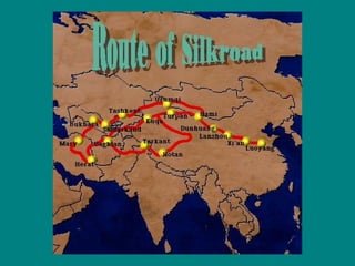 Chinese civilization developed along the Huang Ho River beginning around 2200 BCE. Key aspects of Chinese civilization include a powerful central authority, veneration of ancestors, and philosophies like Confucianism and Taoism. Major dynasties like the Shang, Zhou, Qin, Han, Tang, Song, Yuan, and Ming ruled China over time and established institutions influenced by Confucianism, Legalism, and other philosophies. Chinese civilization reached a cultural peak under dynasties like the Tang and Song but declined in the later Ming period prior to the 1644 establishment of the Qing dynasty.
