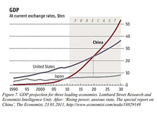 China's economy has grown at an average of 9-10% annually for 30 years, allowing it to become the second largest economy in the world behind only the United States. If China maintains 7% growth, its economy will double in size within a decade and surpass the current size of the American economy, making China the world's largest economy, possibly as early as 2014 according to IMF projections. Over the next 50 years, China is expected to undergo further dramatic shifts that will impact not only its domestic situation but also the global economy.