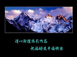 文档描述了天山山脉及周边地区的自然景观和人文风情,包括巴音布鲁克的天鹅保护区、那拉提大草原的牧羊场景、塞里木湖的秀美晨曦以及喀纳斯自然保护区的迷人湖泊等。多个地点展示了四季变化的美丽景色,如秋天的禾木村和五彩滩的独特岩石。该文档还提到地方文化和民族特色,如哈萨克族的氈房和婚礼。