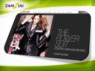 E-commerce refers to the sale of goods and services over the Internet. ZamZuu is an e-commerce company launched in 2010 that is backed by a publicly traded parent company founded in 2001. ZamZuu operates an online shopping mall with over 700 stores and specialty stores selling superior products, as well as an online travel store, and pays commissions of 50-60% to site owners. Starting an Internet business with ZamZuu requires a one-time $249.95 setup fee and $49.95 monthly fee for website hosting and support.