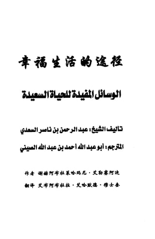 學讀島建的建72. 車普露椅悉的其主之名 甜言 一切贊頌,全但真主,他攔有一切的贊頌,我 作道:除狙一充二的真主外,絕元皮受崇拜的主: 我又作道:穆罕默德是真主的仆人和使者:愿清高 偉大的真主賜福他和他的家厲,余主 fl 弟子。 的碗,內心的平靜、安于和愉快,能消除一切 忱愁和悲銜,它是每令人的目的,以此荻得美滴的 生活,充限的政法和喜悅。送些信仰因素、自然因 素和行方因素,只有信士才能完善之。至于其他的 人,如果他們藐得某方面,某小因素,他們的理智 都金勻之斗爭,使他們全失去其它几令方面一一最 有意文、最肯定、最完善狀況和錯局。我特在遠篇 文章中提到我所接得送些恃大自諒的途徑,它是人 人均之奇斗的目粽。堆挨得了其中的大部分,他就 舍生活的舒造和美漏:堆失敗地設有接得整毫,他 特生活在不幸和悲衷之中:權義得了追問神之間 的,根揚他所嶽得的援助而定。真主是使人成功的 援助者,是幫助一切善行、消除所有罪惡的主。 -5-