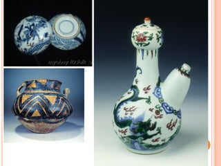 After the Neolithic period, ancient Chinese produced painted, black, and carved pottery. During the Han dynasty, China entered a new ceramic age due to advances in kiln firing techniques. While glazed pottery was produced as early as the Western Zhou dynasty, common production began in the Han dynasty. Production of blue and white porcelain declined in quality between the Yuan and Ming dynasties due to a cobalt shortage but improved under the Yung Lo reign with whiter bodies and richer blues. Dragon and phoenix motifs were most popular on Ming ceramics along with other decorations. The Qing dynasty saw further improvements in ceramic types including underglaze blue, polychrome, and monochrome glazes