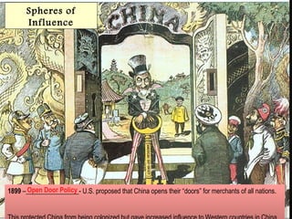 The document summarizes the Chinese Communist Revolution from 1899 to 1949. It describes the rise of Chinese nationalism in response to foreign influence, the overthrow of the Qing Dynasty by the Nationalist Party led by Sun Yixian, and the subsequent civil war between the Nationalists and Communists led by Mao Zedong. After years of conflict, including fighting together against Japanese invasion, Mao and the Communists emerged victorious in 1949, establishing the People's Republic of China with Mao as its leader.