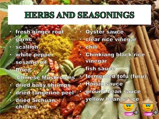 - Chinese cuisine uses diverse colors, aromatic flavors, and tastes to create dishes that are works of art as well as delicious.