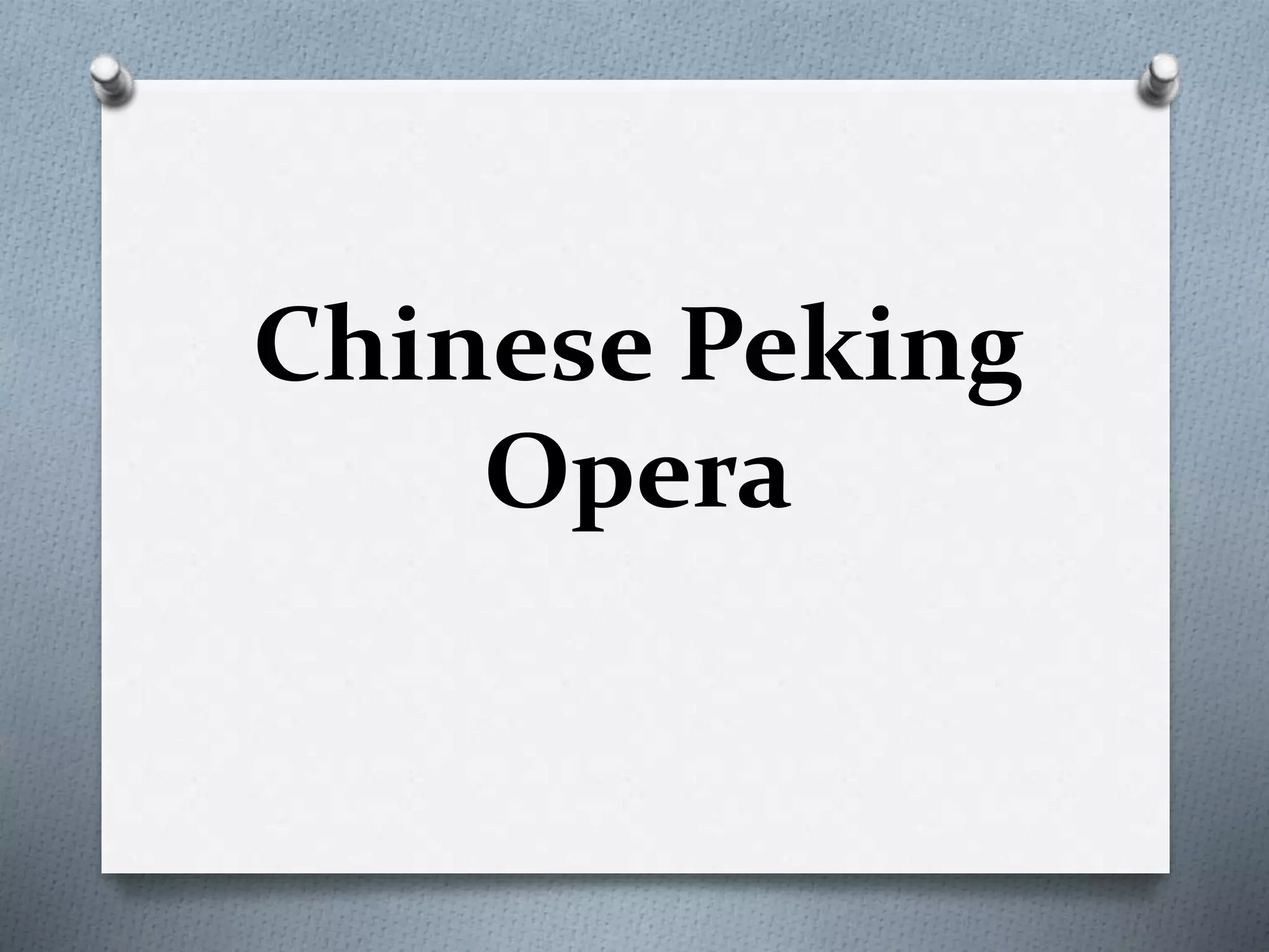 Peking opera is a traditional Chinese art form that combines music, singing, acting, acrobatics, and martial arts. Performances feature actors in elaborate costumes and symbolic makeup depicting characters from history and mythology. Stories focus on morality and heroism. Specific conventions govern performers' gestures and movement on stage to clearly express meaning to audiences.