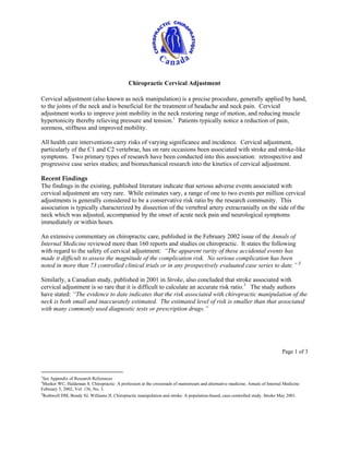 Cervical adjustment, or neck manipulation, is a chiropractic technique aimed at alleviating neck pain and headaches by enhancing joint mobility and reducing muscle tension. Although there is a rare risk of serious adverse events such as stroke, studies indicate that the incidence is low, often estimated at one to two cases per million adjustments. Ongoing research continues to verify the safety and efficacy of cervical adjustment, reinforcing the profession's commitment to informed consent and patient safety.