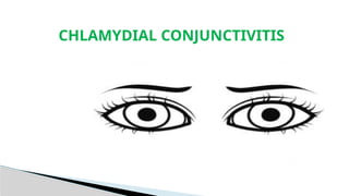 Chlamydial conjunctivitis is caused by various serovars of Chlamydia trachomatis and can lead to severe ocular complications, including irreversible blindness from trachoma. Diagnosis involves identifying symptoms such as redness and discharge, and treatment typically includes antibiotics like azithromycin and doxycycline. Preventative strategies focus on community health measures, including increased hygiene and access to water, alongside surgical interventions for advanced cases.