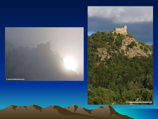 LEGENDY Najsłynniejszą legendą,związaną z twierdzą Chojnik, jest historia o pięknej księżniczce Kunegundzie, córce zamożnego właściciela zamku. O jej rękę starało się wielu zacnych rycerzy przybywających na zamek, jednakże księżniczka postawiła śmiałkom jeden warunek. Zostanie żoną tego, kto w pełnej zbroi objedzie na swoim wierzchowcu wokół murów zamkowych. Wszyscy wiedzieli, że zadanie to było niemalże niewykonalne z powodu stromych zboczy góry, jednak niejeden rycerz próbował swych sił. Wszyscy ginęli spadając w przepaść, a co mądrzejsi rezygnowali zawczasu. Wiele lat upłynęło i wielu młodzieńców straciło życie, aż na zamku pojawił się rycerz z Krakowa, który od razu spodobał się Kunegundzie. Chciała nawet dla niego zrezygnować ze śmiertelnej próby, ale dumny śmiałek siedząc w siodle podjął wyzwanie. Objechał zamek, a jego koń utrzymał się na urwistym szlaku. Rozległy się fanfary, a księżniczka wybiegła rzucić mu się na szyję. Ten jednak ani drgnął i odrzekł, iż nie chce wiązać się z Kunegundą, gdyż przez jej okrutny pomysł zginęło tylu niewinnych ludzi. Chciał tylko pokazać, na co stać polskie rycerstwo. Następnie odjechał, a księżniczka, nie mogąc znieść upokorzenia, jakiego doznała od dzielnego rycerza (według innej wersji – wyrzutów sumienia), sama rzuciła się w górską przepaść.