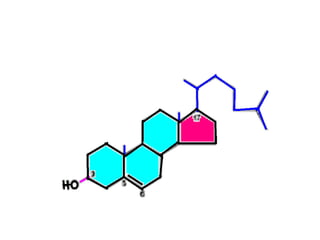 Cholesterol biosynthesis is a multi-step process that begins with acetyl-CoA and occurs primarily in the liver and other tissues. Key steps include the conversion of HMG-CoA to mevalonate by the rate-limiting enzyme HMG-CoA reductase. Cholesterol can then be used for membrane structure, steroid hormone synthesis, or converted to bile acids which are secreted in the bile. Cholesterol levels are regulated by feedback inhibition of HMG-CoA reductase and uptake/secretion of cholesterol and bile acids. Statins lower cholesterol by inhibiting HMG-CoA reductase.