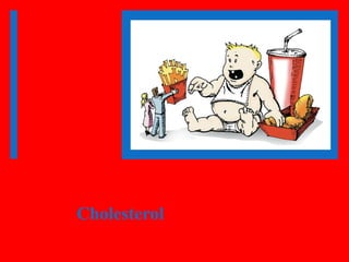 Cholesterol is a fatty substance in the blood that is needed for the body's functions but can accumulate and cause health issues. There are two main types - LDL (bad) cholesterol which raises the risk for heart disease when levels are too high, and HDL (good) cholesterol which helps remove LDL from arteries. Cholesterol levels are affected by diet, physical activity, smoking, and genetics. Maintaining optimal total cholesterol under 200 mg/dL, LDL under 100 mg/dL, and HDL over 60 mg/dL can help lower heart disease risk.