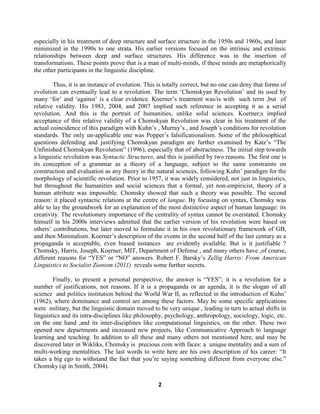 Chomsky's work represented both an evolution from prior theories but also sparked a revolution in linguistics. While influenced by thinkers like Saussure and others, Chomsky introduced several novel concepts that shifted the field, including defining language as a rule-governed system, focusing on syntax over phonology, and proposing that aspects of language are innate rather than learned. His theories, while built upon previous work, came to define modern linguistics and sparked significant debate over the nature of language.