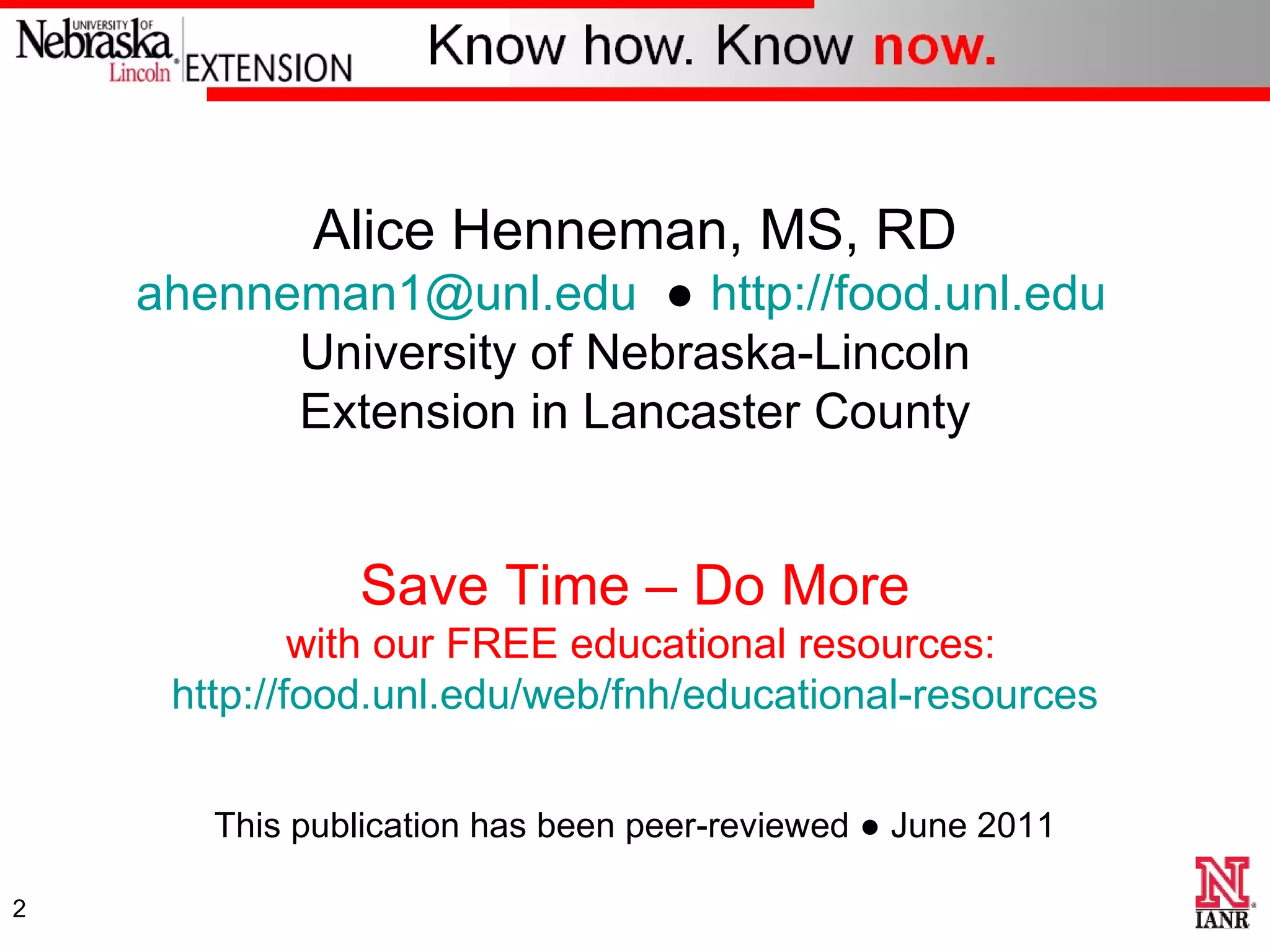 The document outlines the Choose MyPlate initiative, emphasizing balanced nutrition through a menu of selected consumer messages. It provides guidance on portion sizes, nutrient-dense foods, physical activity recommendations, and strategies to reduce sodium and sugar intake. The publication serves as an educational resource for promoting healthy eating patterns and lifestyle choices.