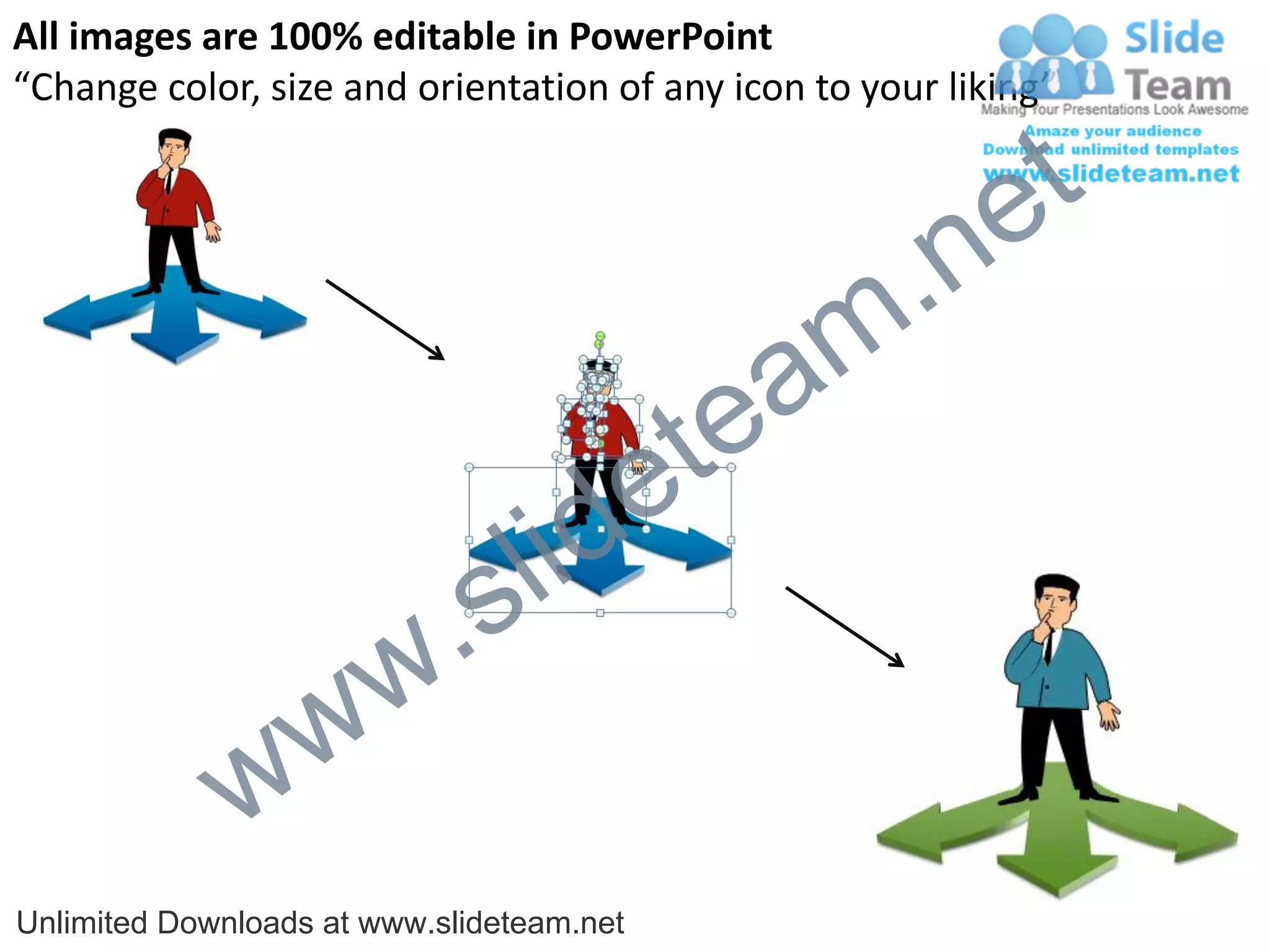 The document discusses how to customize images in PowerPoint presentations. It provides instructions on ungrouping objects, editing colors, and bringing presentations to life with unlimited downloads from a specified website. The steps include right clicking objects to ungroup or format shape, then changing properties like color, size, and orientation to customize images for your presentation.