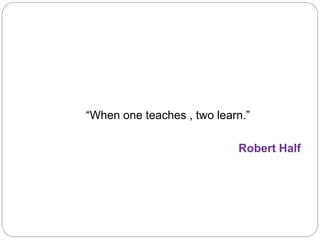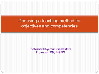 The document discusses various teaching and learning methods (TLMs) and their effectiveness in achieving educational objectives. It emphasizes the importance of choosing appropriate TLMs based on factors like learning objectives, group size, and instructor capabilities. Additionally, it outlines the advantages and limitations of different TLMs, such as lectures, group discussions, and role plays, while encouraging active participation and use of varied teaching strategies.