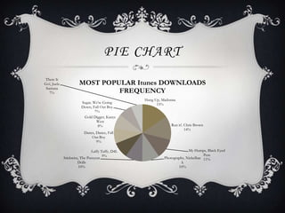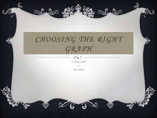 This document discusses choosing the right type of graph for different datasets. It provides examples of a pie chart showing iTunes download percentages, a bar graph of attendance numbers in different states, a scatter plot of weeks spent at number one for videos, and a line graph showing changing comic book sales over time. The analysis explains that a pie chart is best for percentage data, a bar graph for comparing amounts, a scatter plot for showing variation over time, and a line graph for trends over multiple data points.