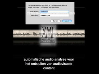 doelontwikkeling dienst voorlaagdrempelig gebruik automatische spraakherkenning ten behoeve van automatische indexering A/V collectiesop basis van in CATCH-CHoral ontwikkelde spraakherkenningstoolkit SHoUT