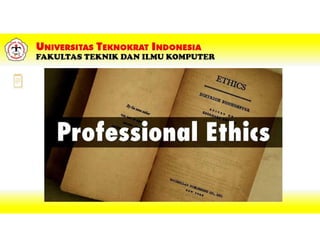 The document focuses on professional ethics in information technology, outlining the responsibilities of computer professionals, ethical decision-making frameworks, and the importance of adhering to codes of ethics from organizations like ACM and CIPS. It discusses various ethical theories such as deontological and consequentialist views, as well as the significance of maintaining integrity, competence, and responsibilities towards clients and the public. Additionally, it emphasizes the necessity of involving real users in system design and testing to ensure user-friendly and safe outcomes.