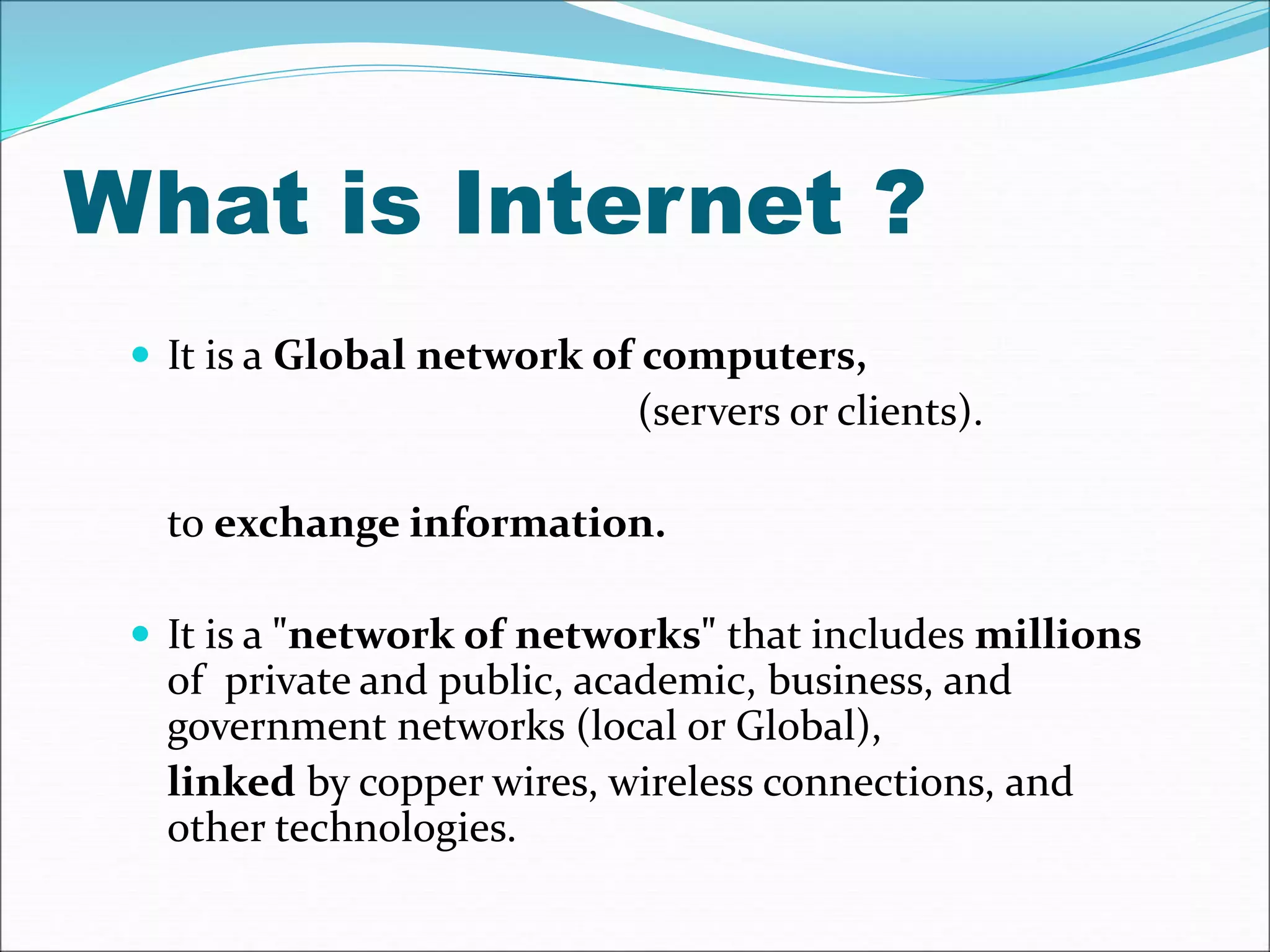 The document defines and describes the Internet, intranets, and extranets. It states that the Internet is a global network of interconnected computers that allows for the exchange of information. Intranets are internal company networks that use Internet standards and are only accessible to authorized employees, while extranets extend intranets to allow access to selected external partners. The document outlines hardware, software, applications, advantages and disadvantages of each system.