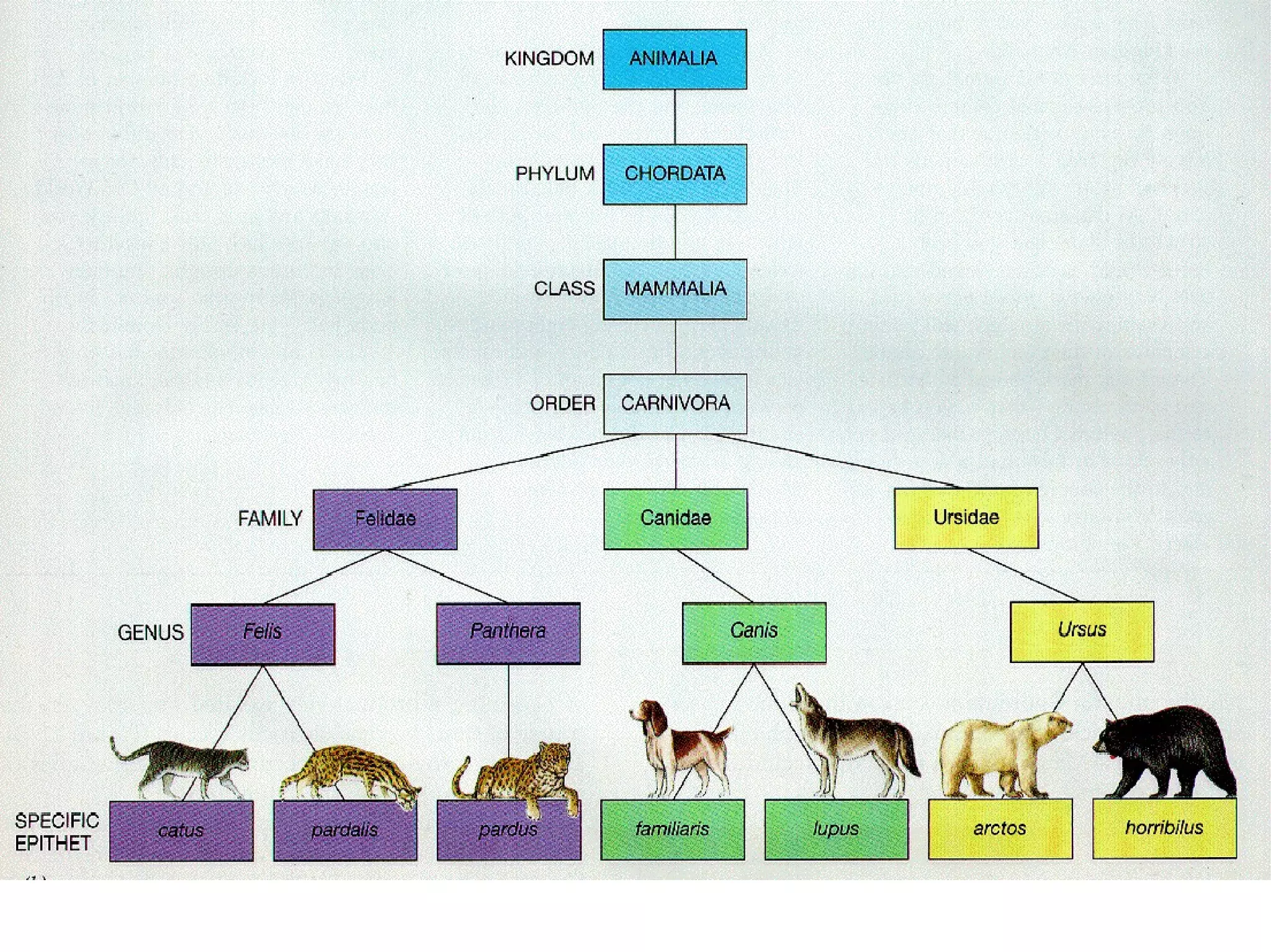Explains the hierarchical categories of classification such as species, genus, family, and domain.