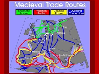 2. A new merchant class, or bourgeoisie, developed in growing cities and towns, challenging the traditional feudal hierarchy. Guilds and increased trade connected regions across Europe.