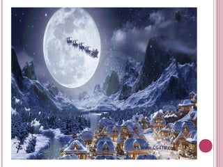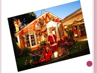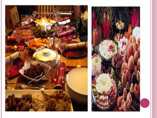 The document provides information about Christmas traditions around the world. It discusses how Christmas is celebrated on December 25th to commemorate the birth of Jesus Christ. It is both a religious and cultural holiday involving traditions like decorating trees, exchanging gifts, attending church services, and waiting for Santa Claus. The document also outlines some common Christmas food traditions in different parts of the world, such as turkey in the UK, fish in Scandinavia and Poland, and goose in Germany and Austria. Popular desserts internationally include fruits, nuts, breads, cakes and sweets.