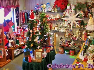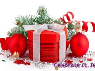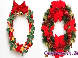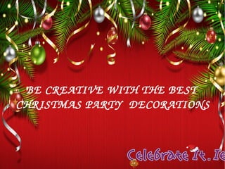 The document provides creative ideas for Christmas party decorations, highlighting items like Christmas lights, ribbons, and ornaments to enhance festive spirit at home. It emphasizes the importance of a beautifully decorated Christmas tree and the use of lights and decorative finishing touches to create a warm ambiance. The content also includes a promotional offer for decorations available on the website www.celebrateit.ie.
