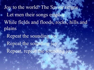 This document contains the lyrics to several Christmas carols celebrating the birth of Jesus Christ. The carols tell the biblical story of the angels appearing to the shepherds to announce the birth of the savior. They describe the shepherds going to Bethlehem to see the baby Jesus lying in the manger. The carols express joy at the coming of God in human form to bring peace and salvation to the world.