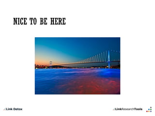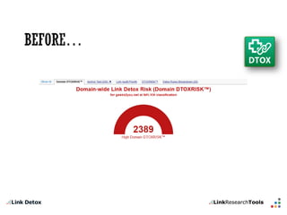 This document discusses search engine optimization (SEO) and recovering from Google algorithm updates like Penguin that aim to combat spammy links. It introduces Christoph Cemper, founder of LinkResearchTools, which offers SEO tools to help with link audits, penalty recovery, and protection against future updates. The document emphasizes that SEO requires ongoing work like regular link audits, disavowing risky links, and adding new content to stay relevant and protected from algorithms. It also warns against risky linking practices like buying or exchanging links that could appear unnatural or spammy.