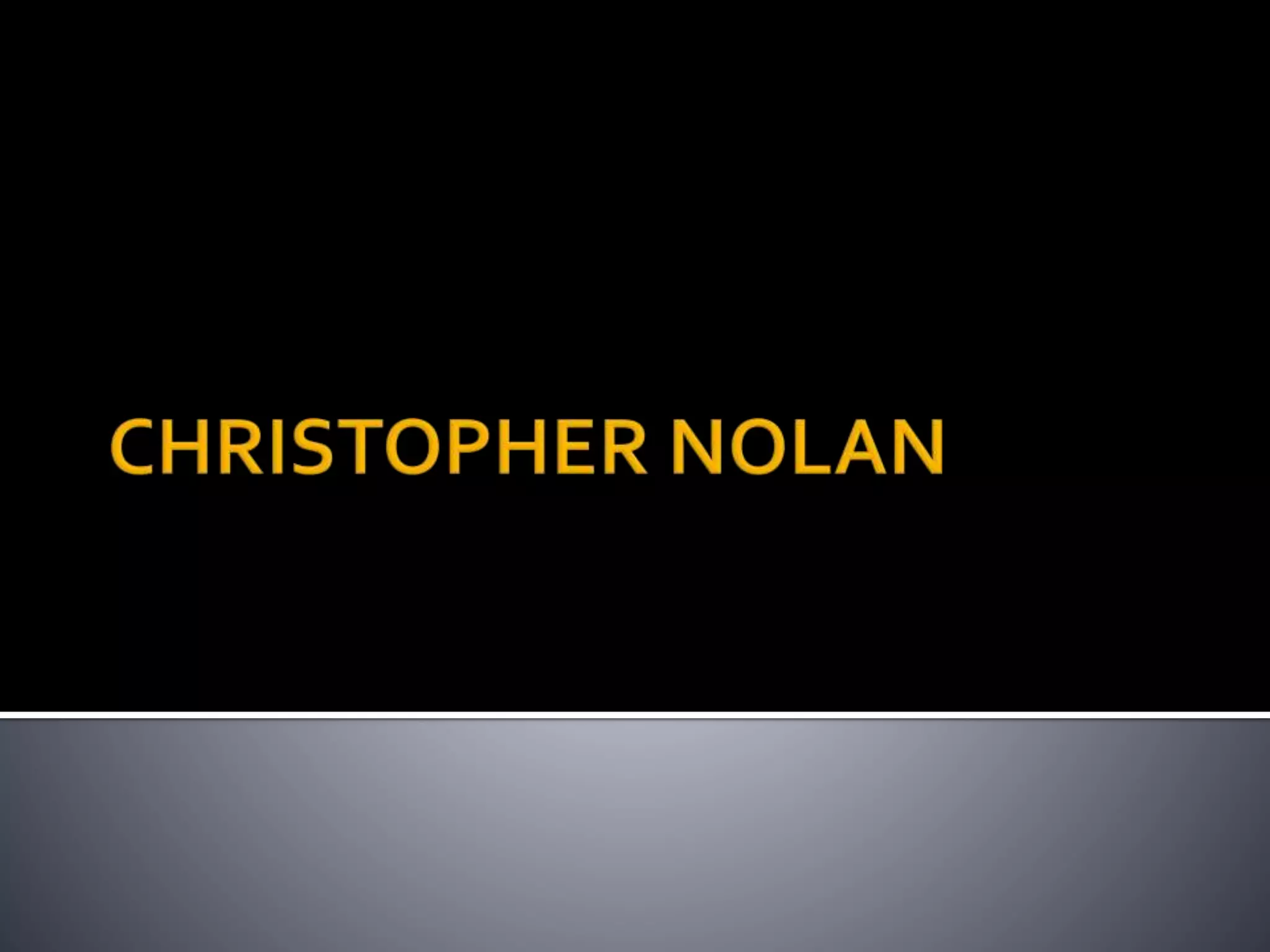 Christopher Nolan is a British-American film director born in London in 1970. He studied English literature in university and made his first films while in his 20s. Nolan is known for directing complex, psychological thrillers like Memento (2000), the Dark Knight trilogy (2005, 2008, 2012), and Inception (2010). These films started off low-budget but became massive blockbusters. Nolan is praised for his intricate storytelling and secrecy around his film projects.