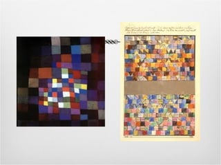 Paul Klee was a Swiss born painter known for his small scale, delicate watercolor paintings and drawings that featured compositions of colored squares that radiated like mosaics, often incorporating letters and numerals.