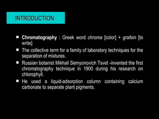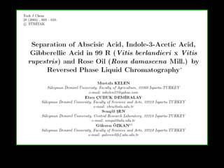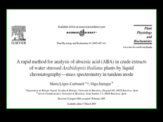 The document discusses chromatographic techniques for estimating plant hormones, detailing the history, principles, and methods including high-performance liquid chromatography (HPLC) and gas chromatography-mass spectrometry (GC-MS). It highlights challenges in accurately extracting and quantifying various hormones, as well as recent advancements that enhance the efficiency and reliability of these analyses. Applications of these methods in plant hormone research and analyses, particularly for indole-3-acetic acid and abscisic acid, are also covered.
