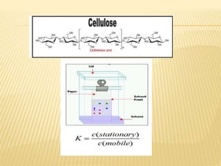The document provides an overview of chromatography, a technique for separating the components of a mixture based on their distribution between a mobile phase and a stationary phase. It discusses the history of chromatography, various techniques such as thin layer, paper, column, partition, and gel permeation chromatography, highlighting their applications in science. Additionally, it references key contributions and sources related to chromatography.