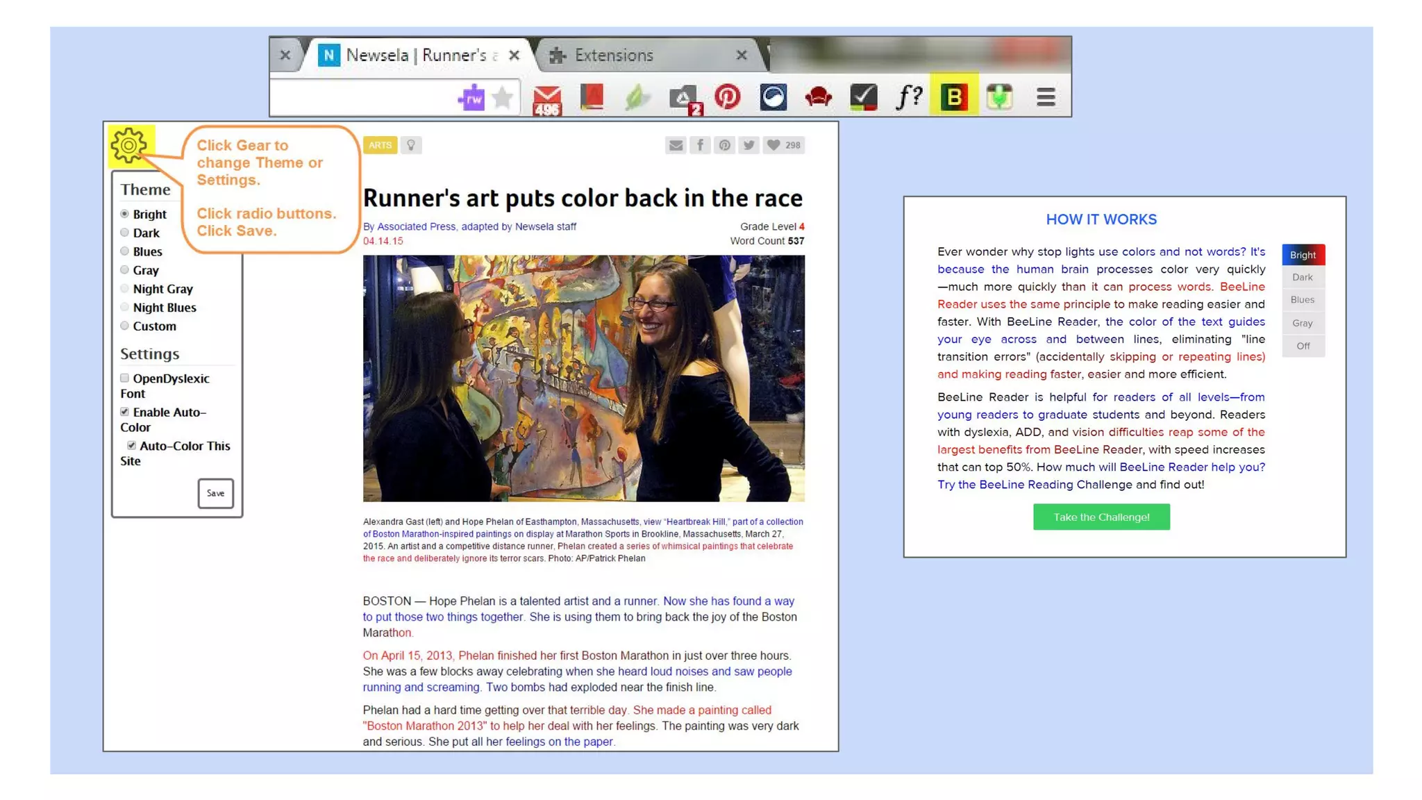 This document provides information about various Chrome extensions and apps that can be used for literacy. It discusses the differences between extensions and apps, and then describes several specific extensions and apps, including Read&Write for Google, Newsela, Readability, Extensity, BeeLine Reader, VoiceNote II, EasyBib, Bookshare, Adblock Plus, Snapverter, Google Keep, and Teach for Google. It explains what each one does and how to access and use the various features and tools within each extension or app.